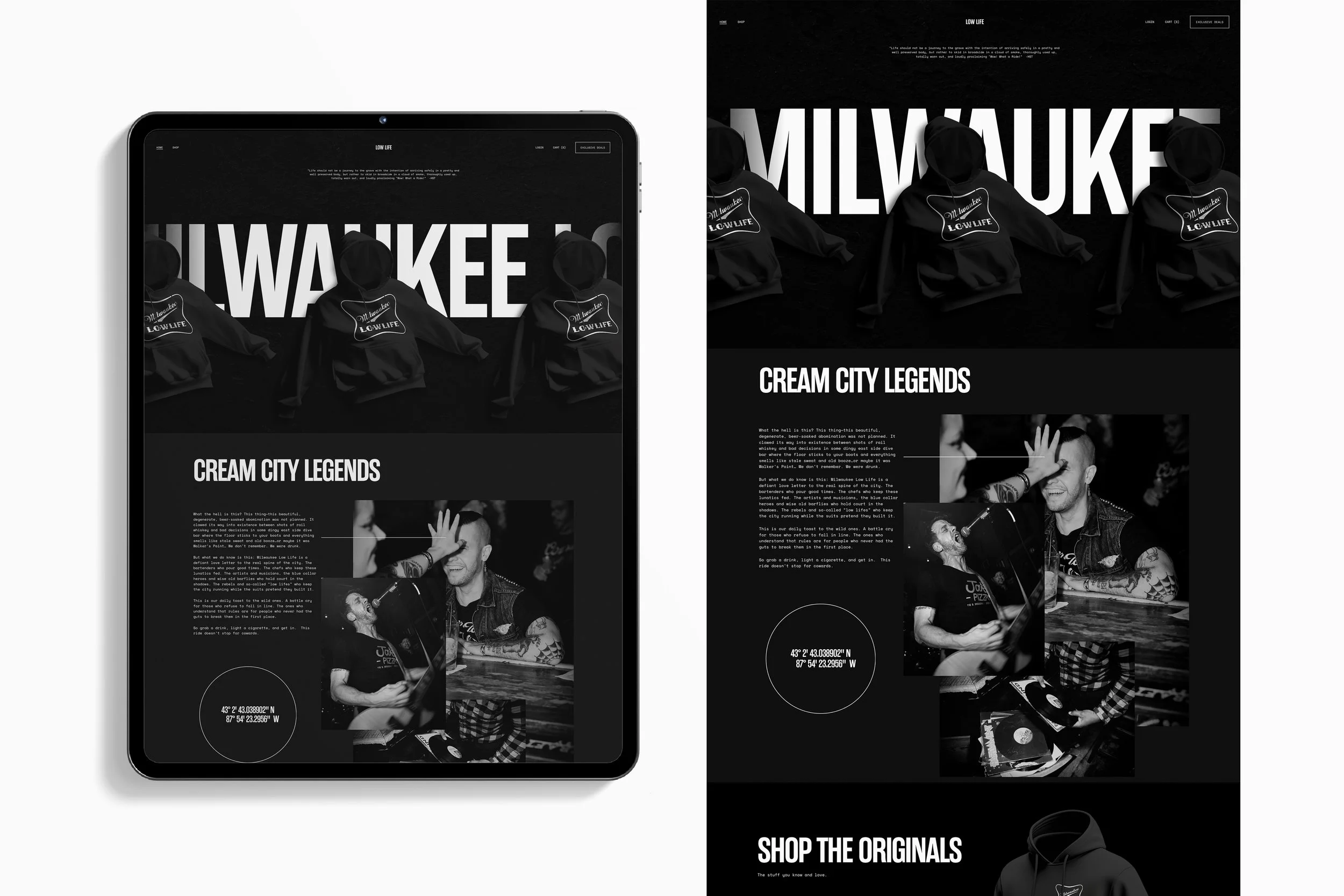 By embedding these voices directly into the site, Milwaukee Low Life stopped feeling like a brand and started feeling like a movement wearing its own uniform.